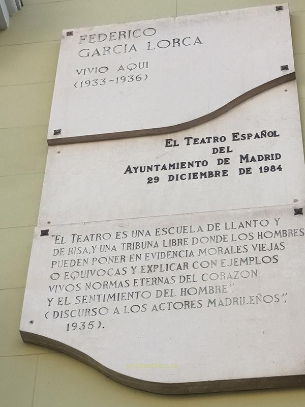 En el lugar donde nos encontramos el poeta vivió sus últimos años en Madrid, época en la que terminó obras como Yerma o La Casa de Bernarda Alba.